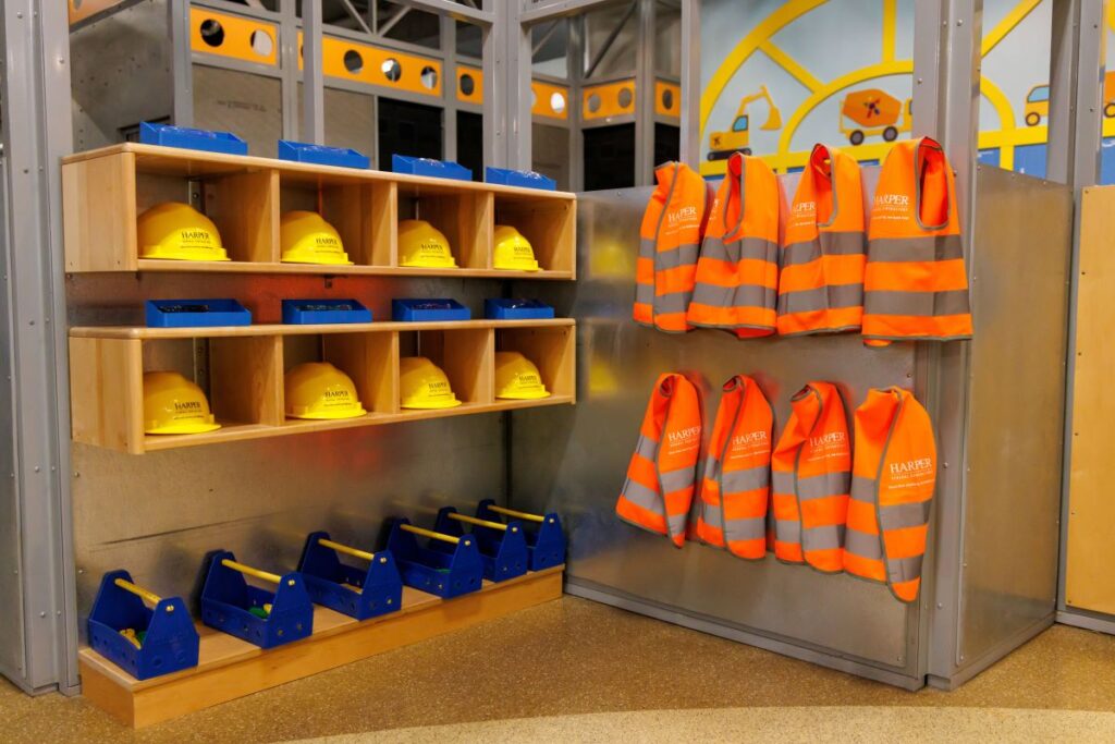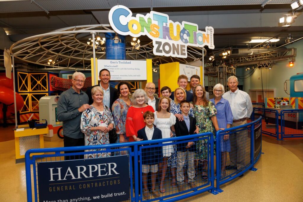 Harper General Contractors proudly supported, as the primary donor, the reopening of the newly renovated Construction Zone exhibit at The Children’s Museum of the Upstate (TCMU) in Greenville, South Carolina. This donation, made in partnership with our trusted local trade partners has allowed TCMU to develop a space giving children an interactive way to explore the world of construction through play.