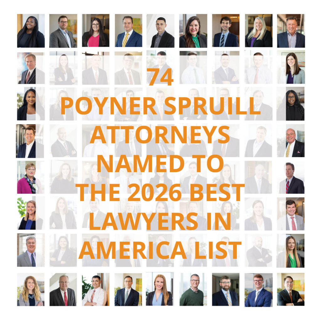 Raleigh-based Poyner Spruill LLP is pleased to announce 74 firm attorneys have been selected by their peers for inclusion in the 2026 Edition of The Best Lawyers® in America and Best Lawyers: Ones to Watch® in America in nearly 50 practice areas.