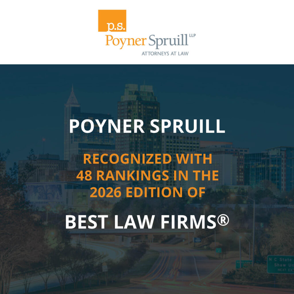 Best Law Firms® has recognized Poyner Spruill LLP with 48 rankings in its 2026 edition, reaffirming the firm’s reputation across a broad range of practice areas and jurisdictions. Each year, Best Law Firms® honors firms that demonstrate outstanding professional achievement, based on rigorous evaluations and consistently high praise from clients and peers.