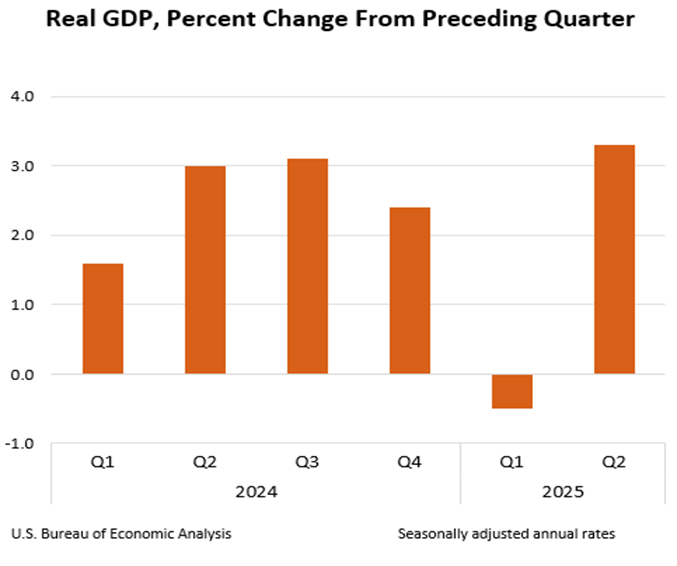 We see evidence of some of this for the nation in the Commerce Department’s estimate for second quarter real GDP growth that came in at a healthy 3.3 percent shown in the next chart.