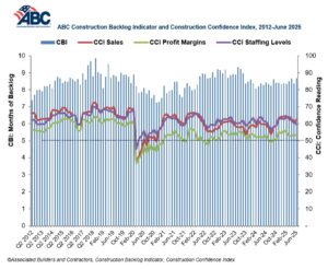 Associated Builders and Contractors reported today that its Construction Backlog Indicator rose to 8.7 months in June, according to an ABC member survey conducted June 20 to July 7. The reading is up 0.3 months since June 2024. View the full Construction Backlog Indicator and Construction Confidence Index data series. The largest contractors have nearly two…