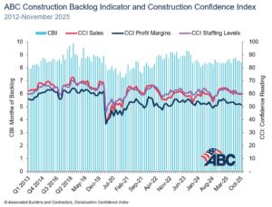 Associated Builders and Contractors reported today that its Construction Backlog Indicator fell to 8.1 months in November, according to an ABC member survey conducted Nov. 20 to Dec. 8. The reading is down 0.3 months since both October 2025 and November 2024. View the full Construction Backlog Indicator and Construction Confidence Index data series. Backlog is…